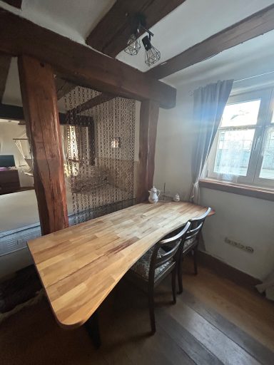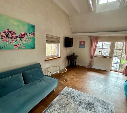 Gemütlich und einladend – die 67 qm große Wohnung im Erdgeschoss unseres denkmalgeschützen Fachwerkhauses bietet Platz für bis zu vier Personen.