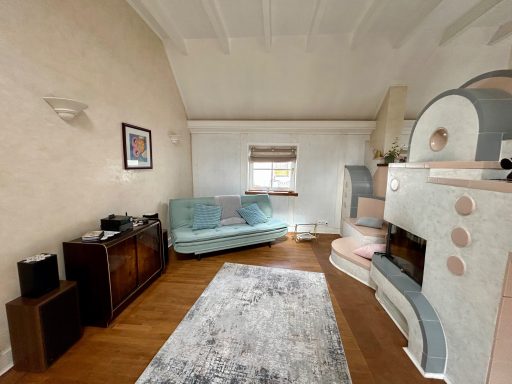 Direkt vom Hof gelangst du in die gemütliche Wohnküche mit gefliesstem Kachelofen, Eckbank und Steinküche. Die Küche hat einen Neff Backofen mit Induktionsherd, einen großen Kühlschrank mit Eisfach sowie eine moderne Spülmaschine. Von der Küche gelangst du in den Flur, wo sich ein kleines Badezimmer mit Dusche im marrokanischem Design anschliesst. Steigst du die runde Holztreppe nach oben, gelangst du linker Hand in ein ca. 40 qm großes Wohnzimmer mit einem großem Kachelofen mit Sitzbank. Wendest du dich nach rechts gelangst du über einen Aufgang in das Schlafzimmer "Lindwurm" mit einem kuscheligem IKEA Henmes Bett, (ausziehbar auf 1,60m). Du kannst es aber auch als Couch nutzen. Von hier gelangst du über einen kleinen Durchgang ins Schlafzimmer "Apfelblüte", in dem sich ein gemütliches Himmelbett (Breite 1,40m) befindet. Die Fenster sind aus Bleiglas und bieten einen wunderschönen Lichteinfall. Zwischen den beiden Schlafzimmern befindet sich ein luxuriöses Bad mit begehbarer Marmor-Runddusche, Whirlpool, Bidet, in Holz eingefasstem Waschbecken und Dampfbad. Auch hier sind bunte Bleiglasfenster eingebaut.